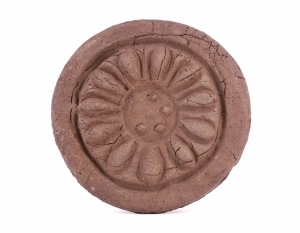 Ингэт толгойн малтлага судалгааны явцад хамгийн олон тоогоор илэрсэн олдвор бол бадам цэцгэн хээтэй дээврийн нүүр ваар юм. Баруун болон зүүн барилгын тууриас илэрсэн бадам цэцгэн хээтэй нүүр вааруудыг хээ чимэглэлийн байдлаар нь харьцуулан үзэхэд хоорондоо ижил буюу бүгд нэг төрлийн нүүр ваарууд байв. Ерөнхий хээ чимэглэлийн бүтцийн хувьд гадна хүрээний дотор талд бадам цэцгийн 11 дэлбээ, тэдгээрийн дунд “Т” хэлбэрийн чимэглэл, голын хонхорцог дотор 7 ширхэг үр дүрсэлсэн.